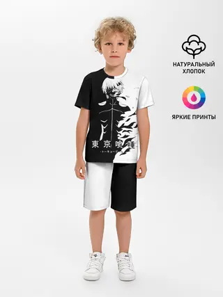 Детская пижама с шортами / Токийский гуль черно белый Кен