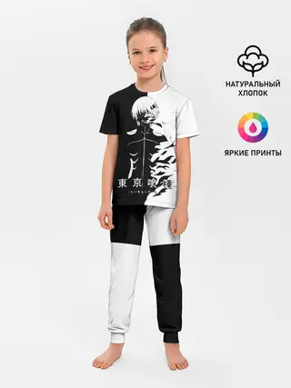Детская пижама с брюками / Токийский гуль черно белый Кен