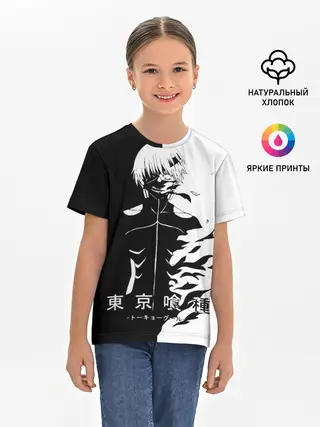 Детская базовая футболка / Токийский гуль черно белый Кен