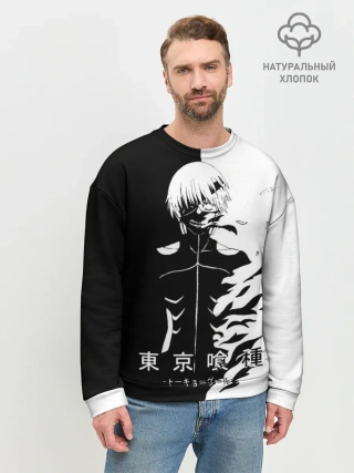 Мужской свитшот базовый / Токийский гуль черно белый Кен