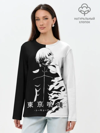 Лонгслив женский. Хлопок / Токийский гуль черно белый Кен