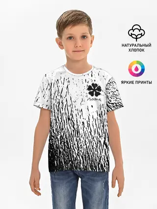 Детская базовая футболка / Черный клевер на едко белом фоне