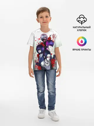 Детская базовая футболка / Канеки с девчонками - Токийский гуль