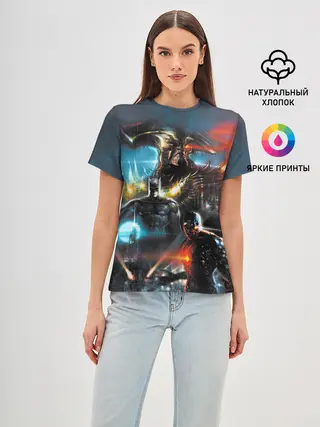 Женская базовая футболка / Batman, Cyborg VS Steppenwolf