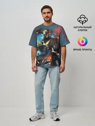 Мужская футболка оверсайз / Batman, Cyborg VS Steppenwolf