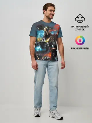 Мужская базовая футболка / Batman, Cyborg VS Steppenwolf