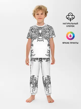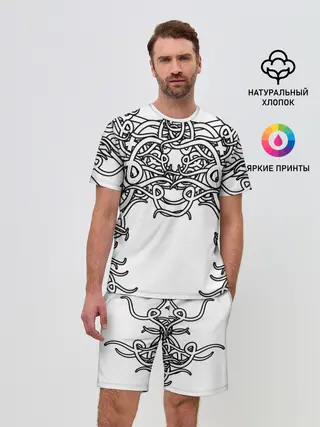 Женская пижама с шортами / Бежевый принт силуэты птичек