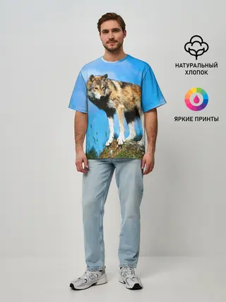 Мужская футболка оверсайз / Волк