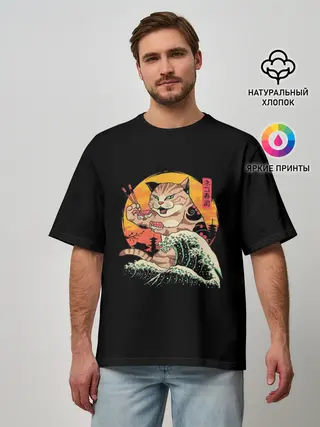 Мужская футболка оверсайз / Neko Sushi Wave