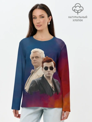 Лонгслив женский. Хлопок / Кроули и Азирафель