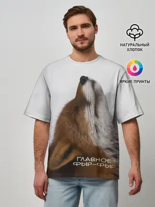 Мужская футболка оверсайз / Лиса Главное фыр-фыр