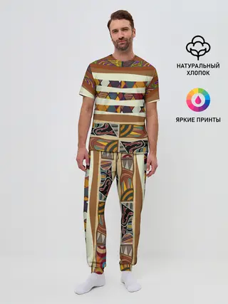 Женская пижама с шортами / Бежевый принт силуэты птичек