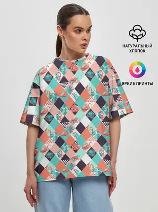 Женская футболка оверсайз / Фламинго
