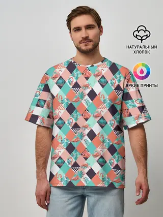 Мужская футболка оверсайз / Фламинго