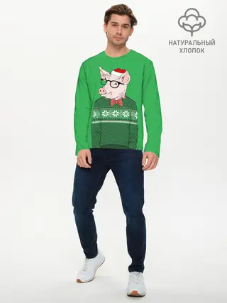 Мужской лонгслив базовый / New Year Hipster Pig