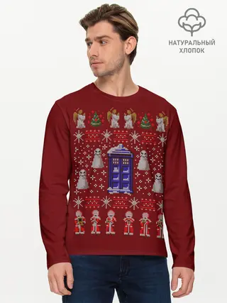 Мужской лонгслив базовый / Новогодний Doctor Who