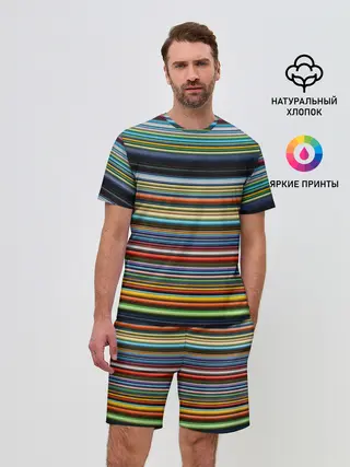 Мужской костюм с шортами / РАзноцыетные линии полосы хаос