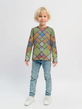 Мужской лонгслив базовый / Мандалы лоскутный печворк