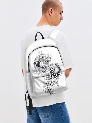 Рюкзак джинсовый / Китайский дракон на белом фоне