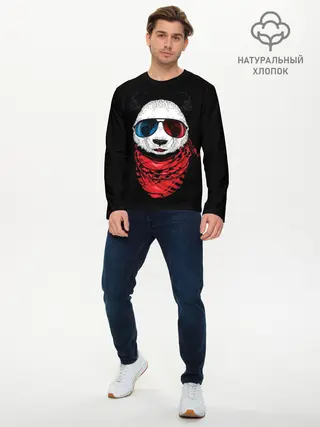 Мужской лонгслив базовый / Панда Хипстер в Очках