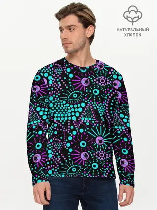 Мужской лонгслив базовый / Яркий абстрактный узор