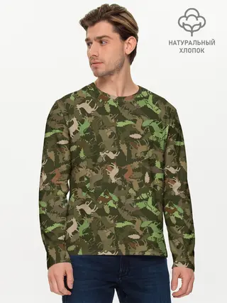 Мужской лонгслив базовый / Лоси в дубовом лесу