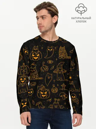 Мужской лонгслив базовый / ХЕЛЛОУИН ПАТТЕРН КОТИКИ / HALLOWEEN KITTY