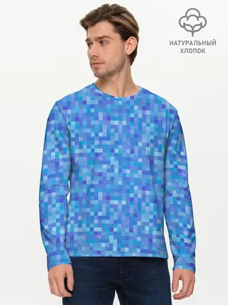 Мужской лонгслив базовый / Голубая пиксель абстракция