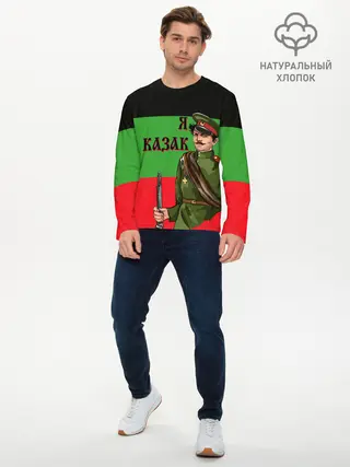 Мужской лонгслив базовый / Терский Казак на фоне Флага