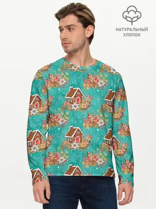 Мужской лонгслив базовый / Рождественские пряники паттерн