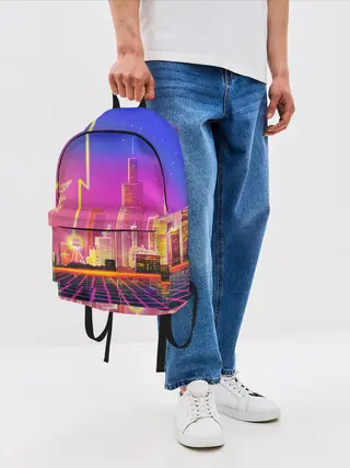 Рюкзак джинсовый / ГОРОД В НЕОНЕ