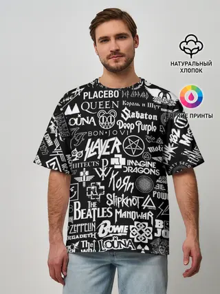 Мужская футболка оверсайз / ЛОГОТИПЫ РОК ГРУПП | ROCK