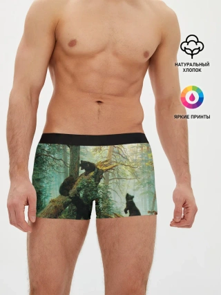 Мужская футболка оверсайз / Утро в сосновом лесу