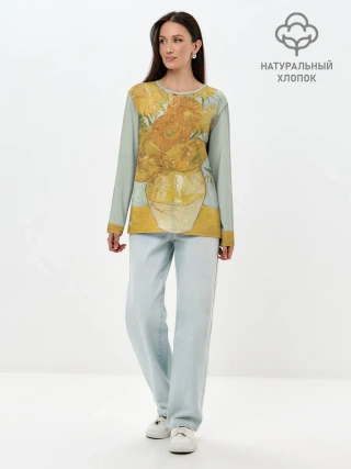 Лонгслив женский. Хлопок / Подсолнухи