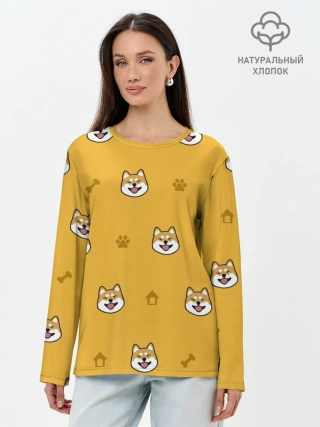 Лонгслив женский. Хлопок / Сиба-ину. Акита-ину.