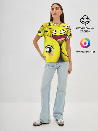 Женская базовая футболка / ЖЕЛТЫЕ СМАЙЛИКИ