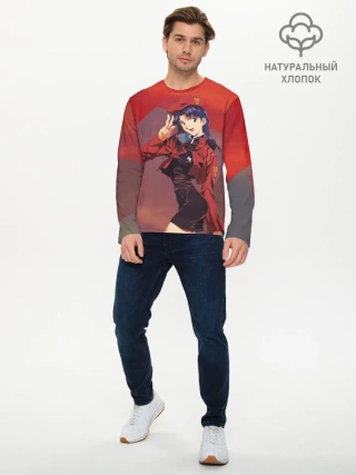 Мужской лонгслив базовый / Misato Katsuragi на красном