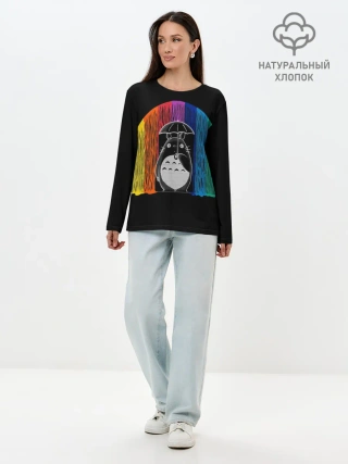 Лонгслив женский. Хлопок / My Neighbor Totoro радужный дождь