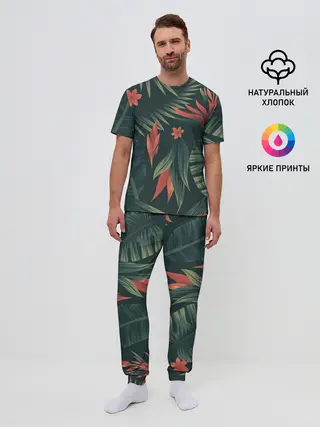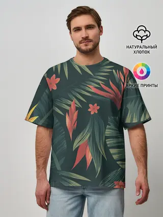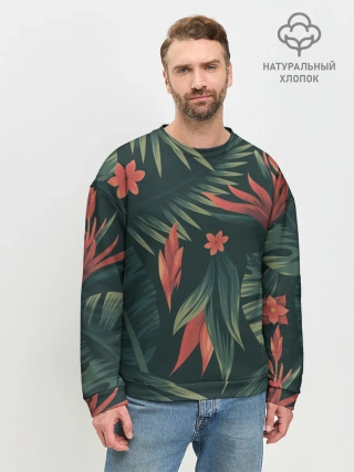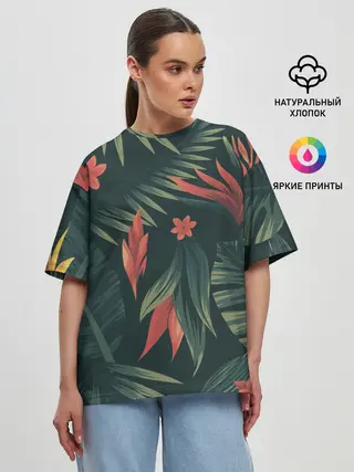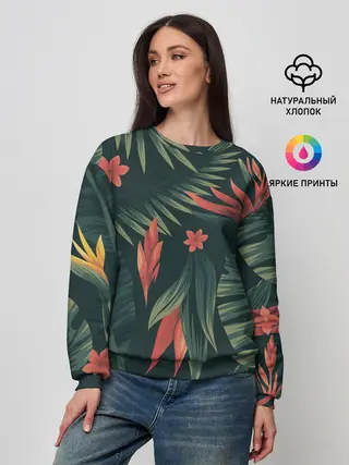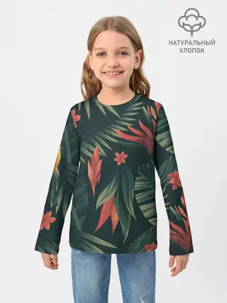 Лонгслив женский. Хлопок / Тропический комуфляж