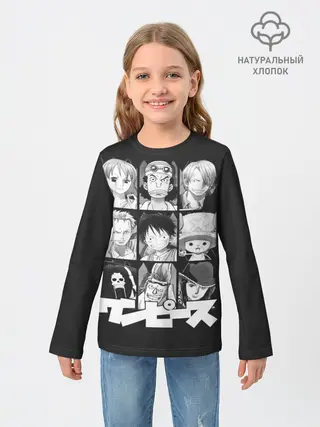 Детский лонгслив / иероглифы One Piece