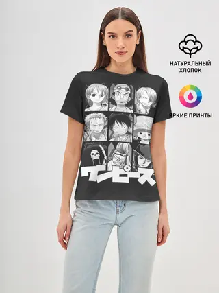 Женская базовая футболка / иероглифы One Piece