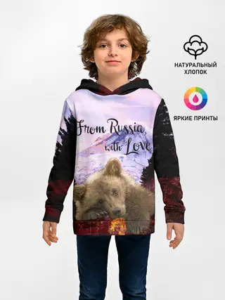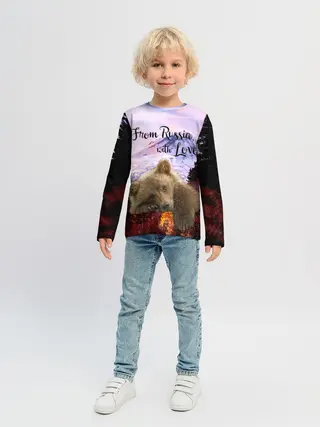 Рюкзак джинсовый / Медведь с рыбой во рту
