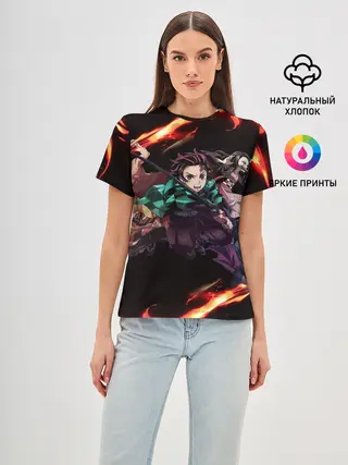 Женская базовая футболка / Kimetsu no Yaiba пламенный узор