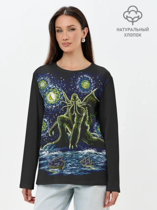Лонгслив женский. Хлопок / Ктулху