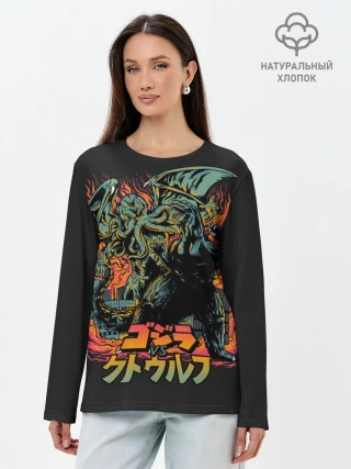 Лонгслив женский. Хлопок / Ктулху