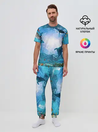 Мужская пижама с брюками / Дельфины