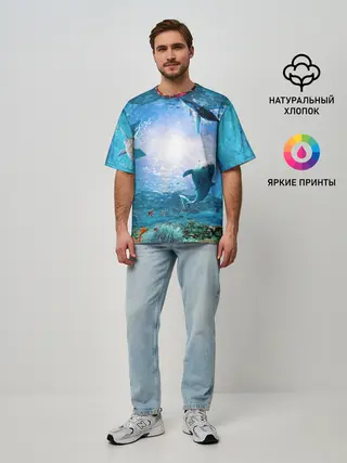 Мужская футболка оверсайз / Дельфины