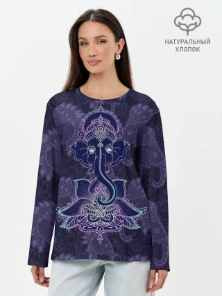Лонгслив женский. Хлопок / Ганеша