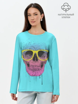 Лонгслив женский. Хлопок / Череп В Очках