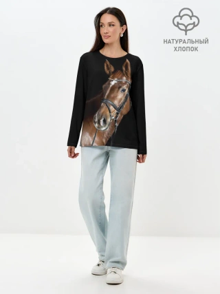 Лонгслив женский. Хлопок / Гнедая лошадь